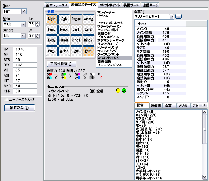 ・ヘイスト装備追加 (ダスクグローブ+1/ヘイスト6%腰/ユニレギ+1)