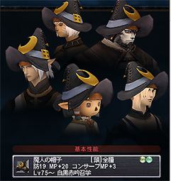 ・魔人の帽子 防19 MP+20 コンサーブMP+3 LV75 白黒赤吟召学